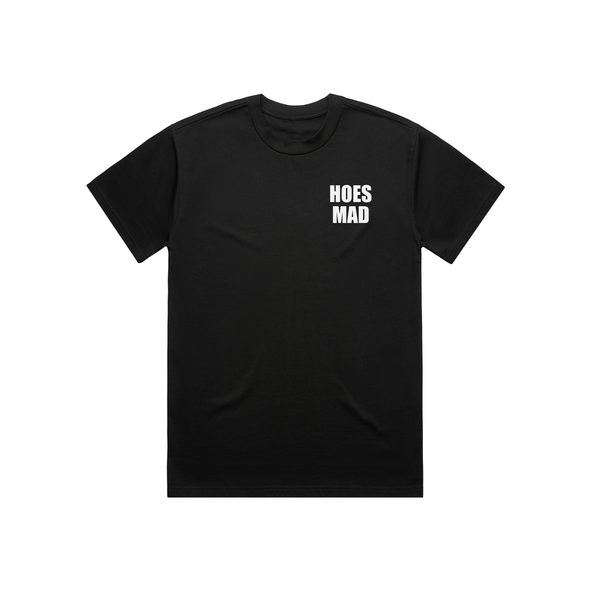 Neck ribbing, side seamed, shoulder to shoulder tape, double needle hems, preshrunk to minimize shrinkage